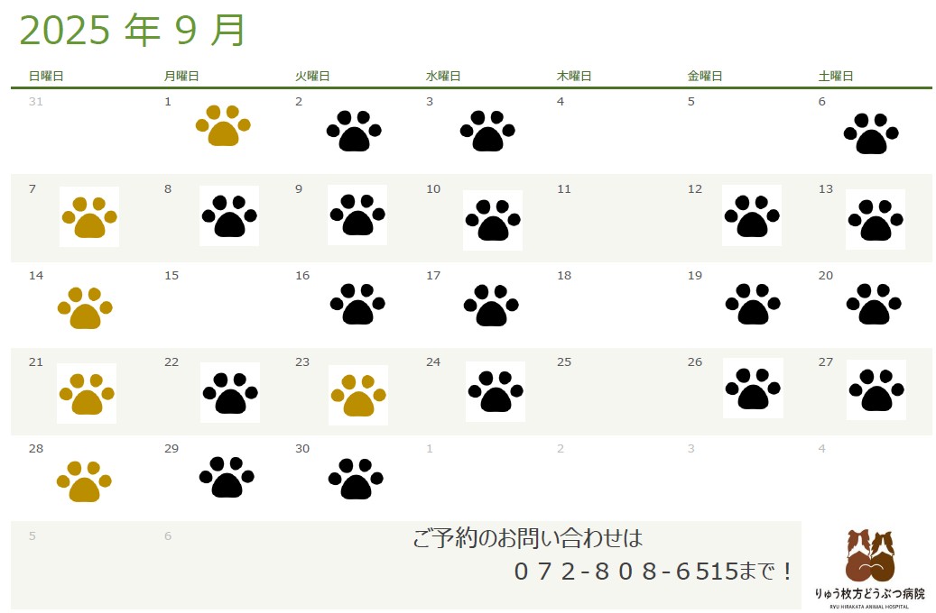 いつもりゅう枚方どうぶつ病院をご利用いただきありがとうございます。