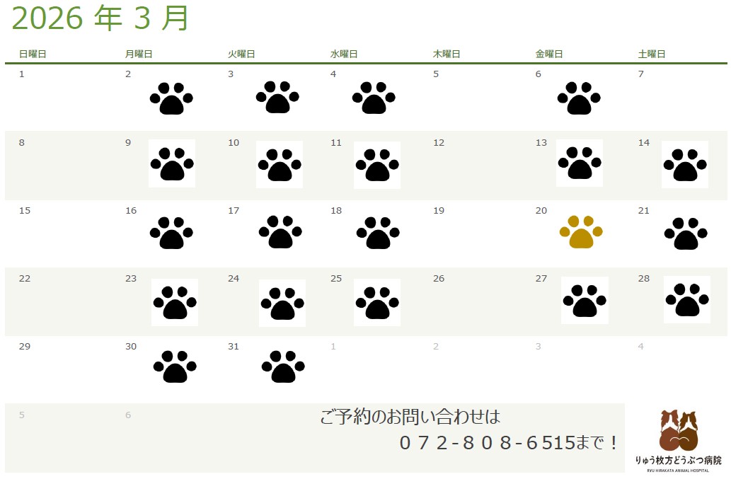 いつもりゅう枚方どうぶつ病院をご利用いただきありがとうございます。