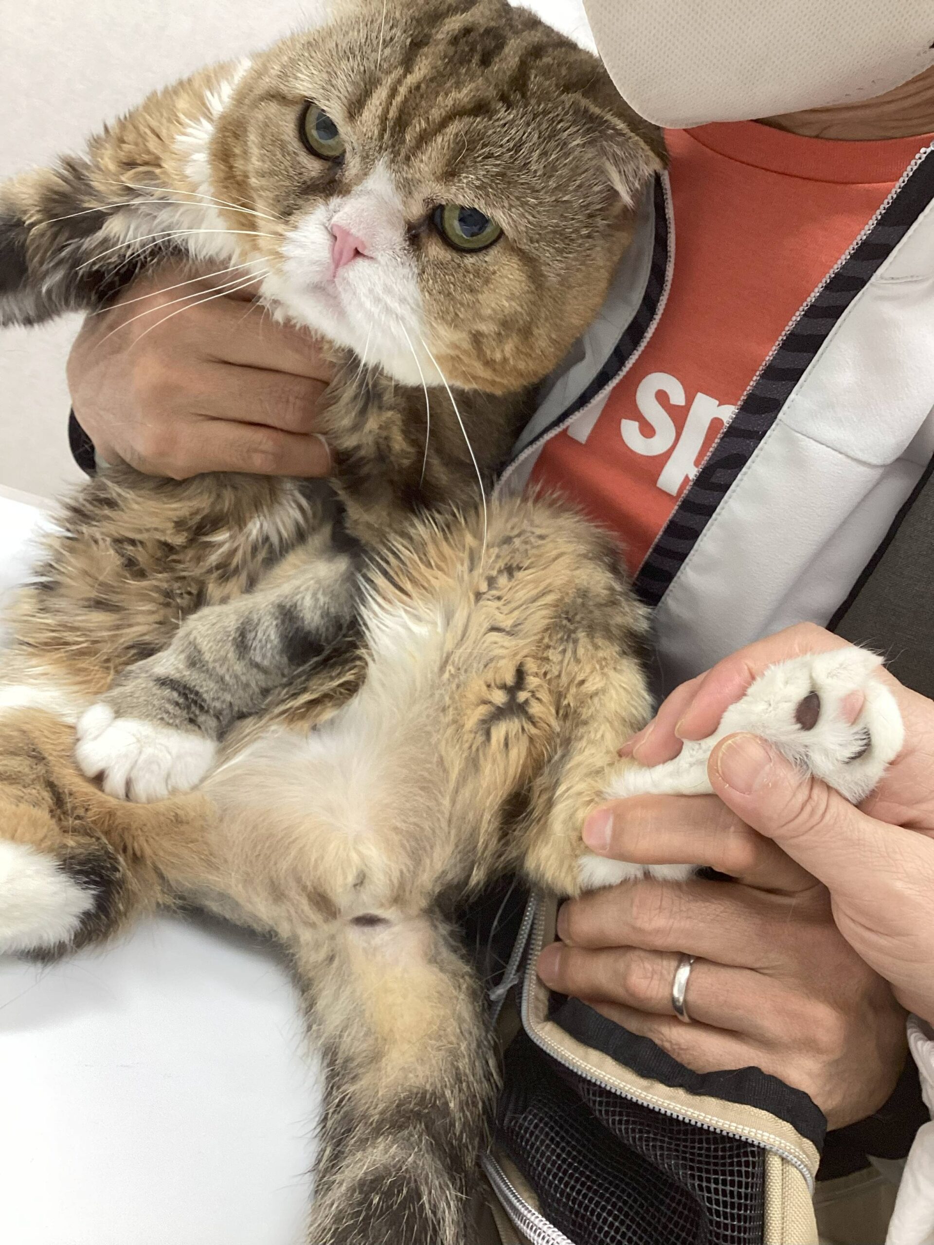 尿が出ないという主訴で来院された10歳の男の子のスコティッシュフォールドのこてつちゃん。
