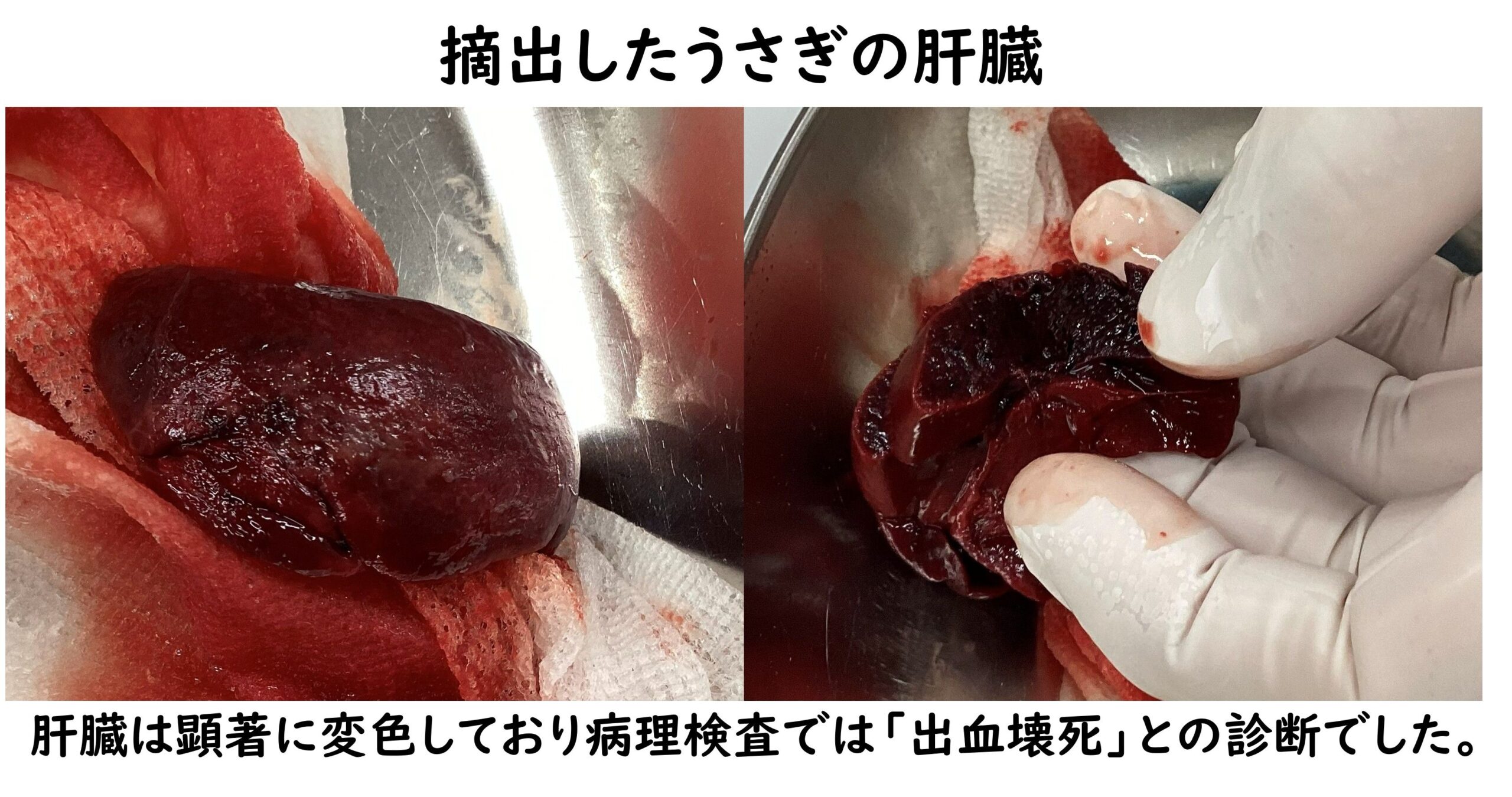 ウサギの肝臓は個体差があり犬猫より細長かったりします。